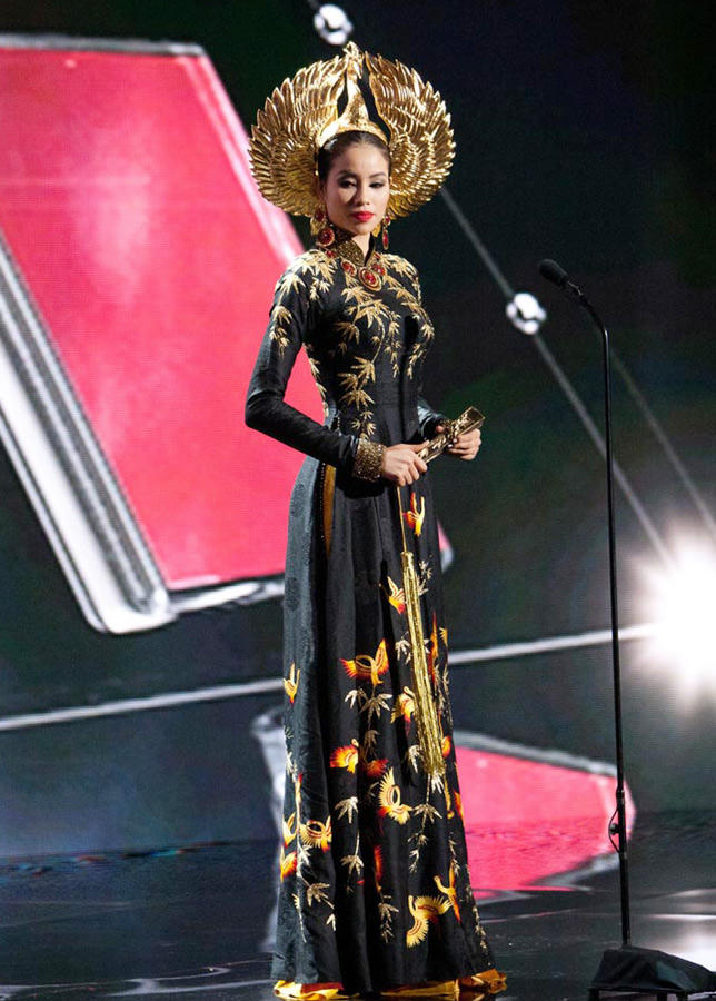 Phạm Hương kiêu sa với chiếc đầm được NTK Công Trí thực hiện trong đêm bán kết HHHV 2015.