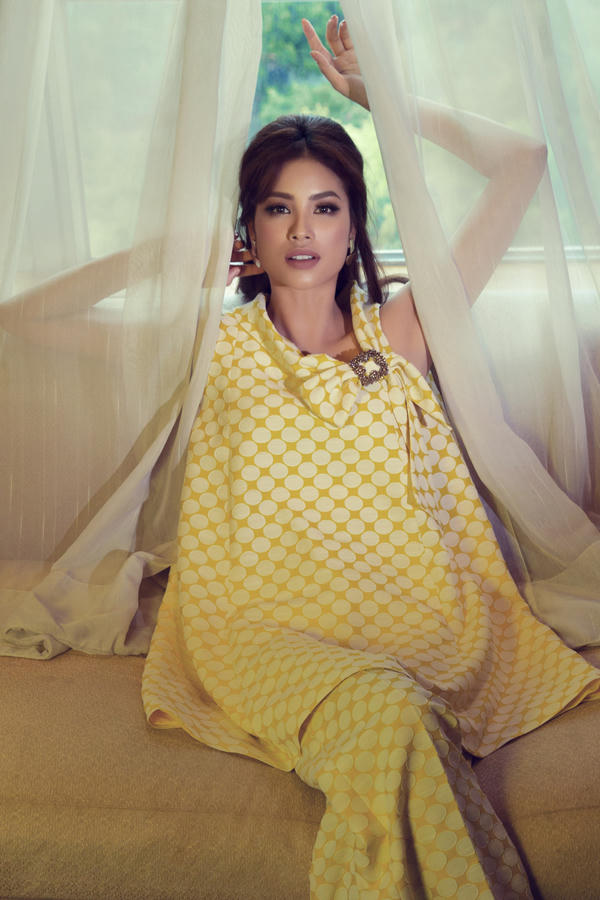 Hóa thân thành nàng thơ mùa hạ của nhà thiết kế, Phạm Hương có sự thay đổi bất ngờ ở diện mạo bên ngoài khi khoác lên mình những bộ cánh mang hơi thở của phong cách retro thập niên 60.