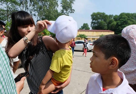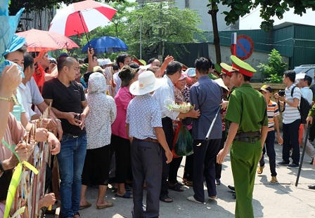 Ôm con đợi chồng dưới nắng, chị Thủy (huyện Sóc Sơn, Hà Nội) bùi ngùi tâm sự, gia đình chị từ nhà đi từ rất sớm, tổng cộng có hơn 10 người đi cùng. Chồng chị tên Khang, phạm tội "Cố ý gây thương tích" và chấp hành án tù được 3 năm nay, khi hai người vừa lập gia đình được 5 tháng.