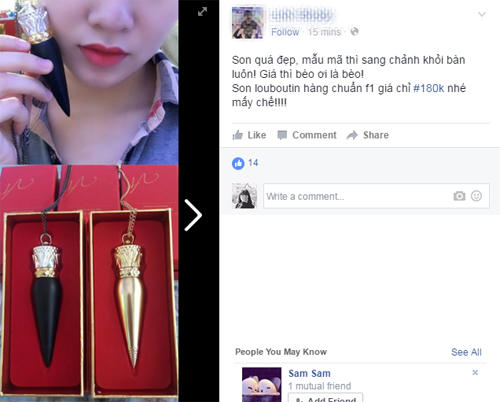 Sản phẩm son nhái Christian Louboutin xuất hiện ngay từ tháng 9 năm ngoái, ngay sau khi thỏi son trứ danh này ra mắt. Tuy nhiên, ở thời điểm đó, giá của thỏi son nhái khá cao, khoảng 500 - 600.000 đồng, tương đương với giá một thỏi son M.A.C hàng chính hãng nên sản phẩm nhái không nhận được nhiều sự chú ý. Còn với mức giá rẻ giật mình như hiện tại, rất nhiều chị em đã 'xiêu lòng'.