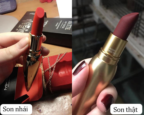Son Christian Louboutin nhái có thiết kế y chang thỏi son thật, từ màu sắc đến kiểu dáng. Khác biệt duy nhất là vỏ hộp.