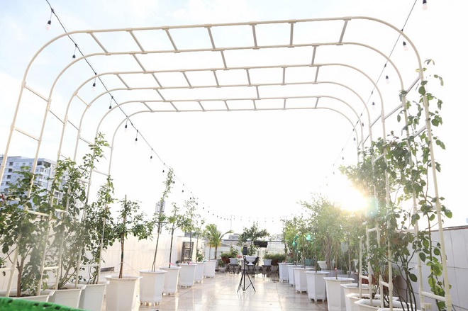 Phan Hiển đã cùng bố ruột làm mái vòm để trồng hồng leo và giăng đèn. Anh hy vọng sau 1-2 năm, dàn hoa hồng sẽ biến mái vòm thành cổng hoa rực rỡ. Phan Hiển tiết lộ tốn hơn trăm triệu để trồng vườn hồng trên sân thượng.