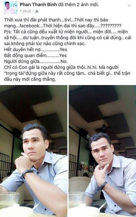 Trên trang cá nhân của mình, Phan Thanh Bình viết: "Thời xưa thì đài phát thanh, tivi, thời nay thì báo mạng, facebook. Thời hiện đại thì sao đây? Tất cả cũng đều xuất phát từ miệng người, miệng đời, miệng xã hội. Dư luận, truyền thông đôi khi cũng có cái đúng, cái sai, không phải lúc nào cũng chính xác.