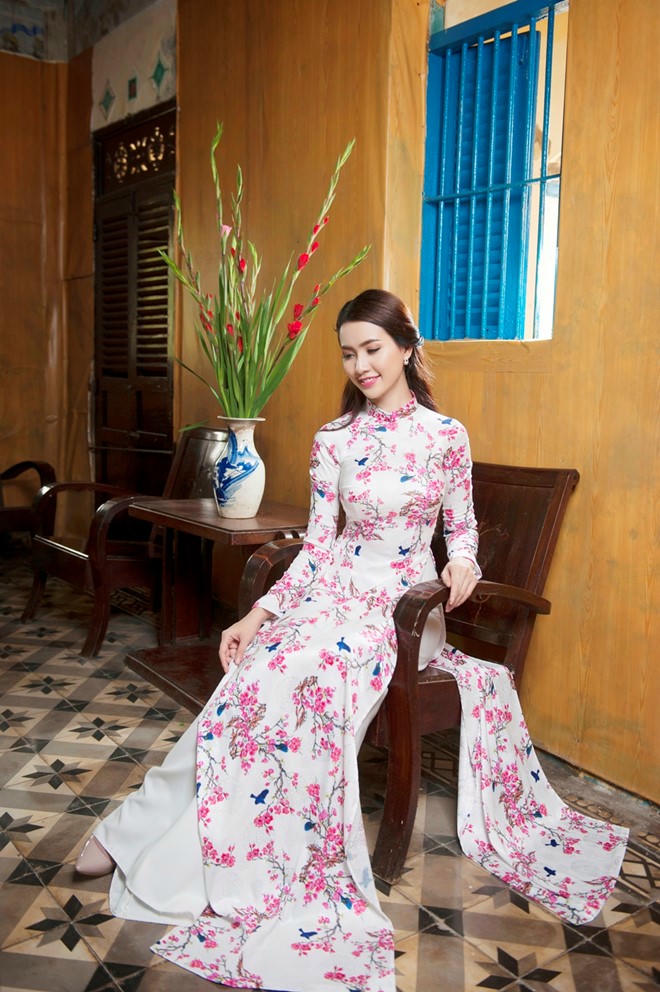 Phan Thị Mơ chọn áo dài trắng, hoạ tiết hồng trẻ trung. Trong khi đó, diễn viên Lối sống sai lầm khoác lên mình thiết kế tông xanh da trời đậm.