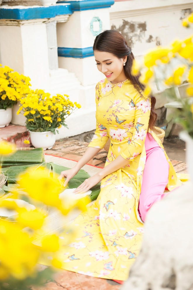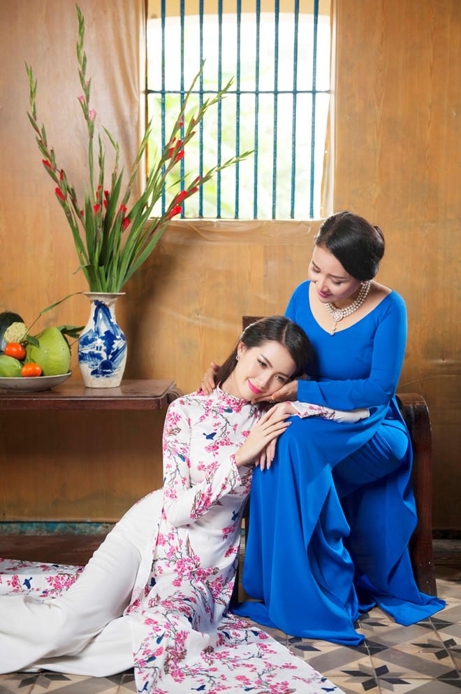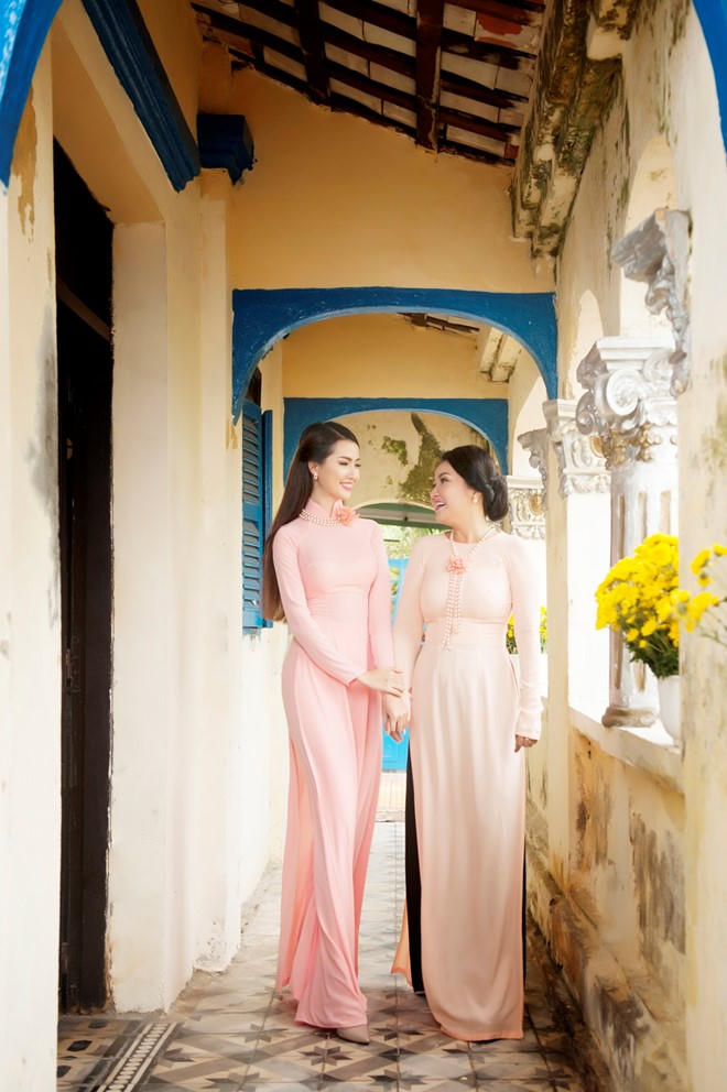 Phan Thị Mơ và Ngân Quỳnh diện áo dài nền nã đón xuân