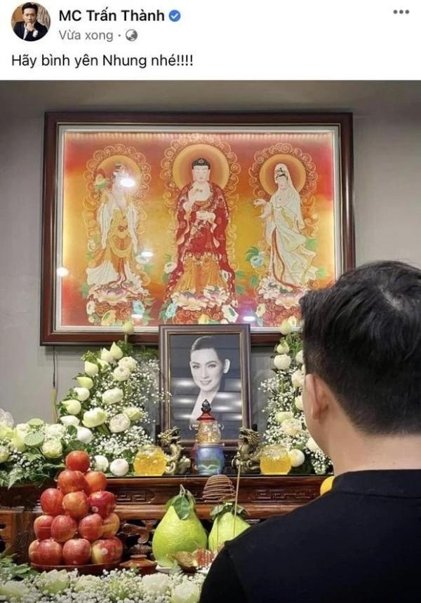 Trên trang cá nhân, Diễm Phạm – quản lý của Phi Nhung chia sẻ về việc Trấn Thành đến tiễn Phi Nhung. Được biết trong tối ngày 15/11, nam MC tham gia một sự kiện thời trang thế nhưng vẫn kịp dành thời gian đến lễ cúng 49 ngày của người đồng nghiệp quá cố.