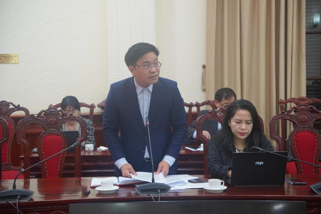 Ông Nguyễn Văn Cương, Viện trưởng Viện Chiến lược và Khoa học pháp lý báo cáo tại phiên họp |