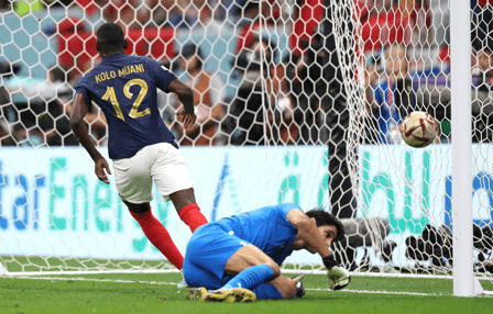 Từ nỗ lực đi bóng của Mbappe, anh dứt điểm trúng chân 1 cầu thủ Ma-rốc, đổi hướng và Muani lập tức ập vào ghi bàn, tạo ra khoảng cách 2-0 cho đội tuyển Pháp ở phút 79.