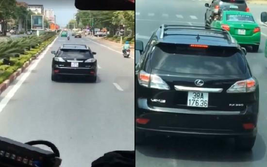 Trước đó, trưa ngày 4/10, trên mạng xã hội xuất hiện clip ghi lại cảnh xe chữa cháy đi trên đường Quang Trung, TP Vinh đang chạy ra chữa cháy vụ cháy kho phế liệu tại xã Nghi Kim (TP Vinh) thì xe Lexus mang BKS 38A-176.36 vẫn chạy phía trước “ngăn cản” xe chữa cháy.