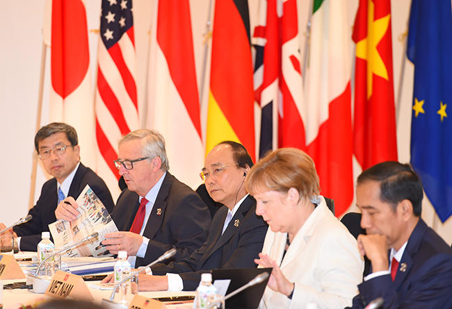 Thủ tướng cho rằng, phát triển bền vững trên cơ sở hội nhập khu vực và quốc tế hiệu quả là định hướng chiến lược phát triển của Việt Nam, trong đó cơ sở hạ tầng là một trong 3 đột phá của kế hoạch phát triển kinh tế-xã hội trong thời gian tới. Việt Nam đánh giá cao sáng kiến của Nhật Bản về đối tác cơ sở hạ tầng chất lượng cao ở châu Á và Sáng kiến Kết nối Mekong-Nhật Bản; hoan nghênh sự hỗ trợ của các nước G-7 khác, trong đó có Mỹ và Nhóm Những người bạn của Hạ nguồn Mekong (FLM) cho sự phát triển bền vững của lưu vực Mekong với sáng kiến mới về Chương trình cơ sở hạ tầng bền vững (SIP).