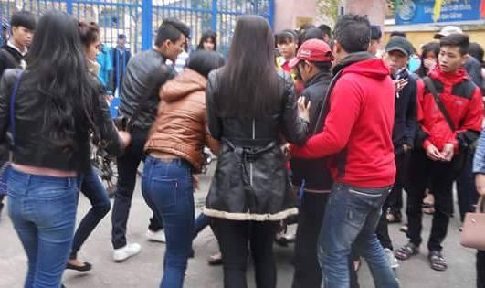 | Nữ sinh N bị đánh ngay trước cổng trường |