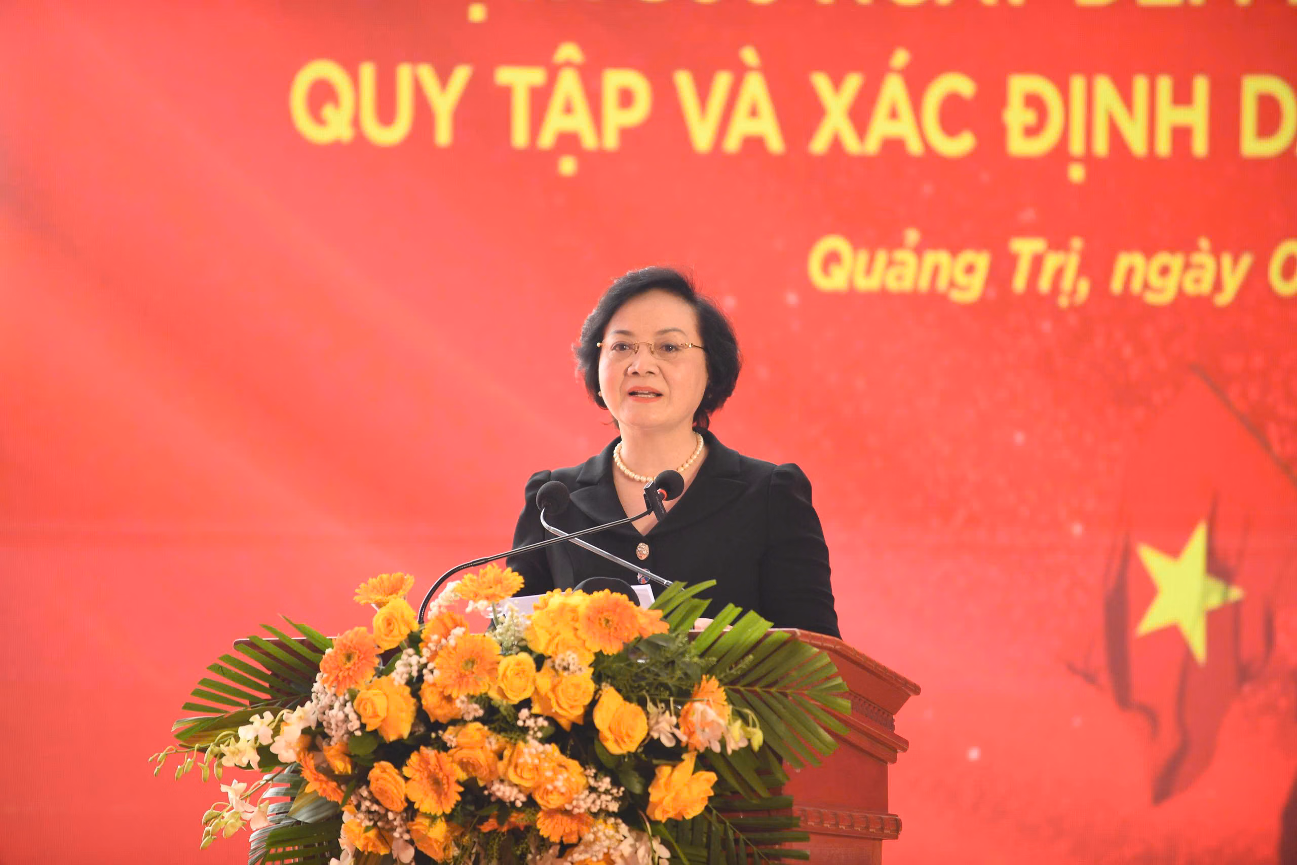 Phát biểu tại buổi lễ, Phó Thủ tướng Phạm Thị Thanh Trà nhấn mạnh công tác tìm kiếm, quy tập và xác định danh tính hài cốt liệt sĩ là nhiệm vụ chính trị đặc biệt quan trọng, cần được triển khai với tinh thần quyết tâm cao, phương pháp khoa học và cách làm bài bản.