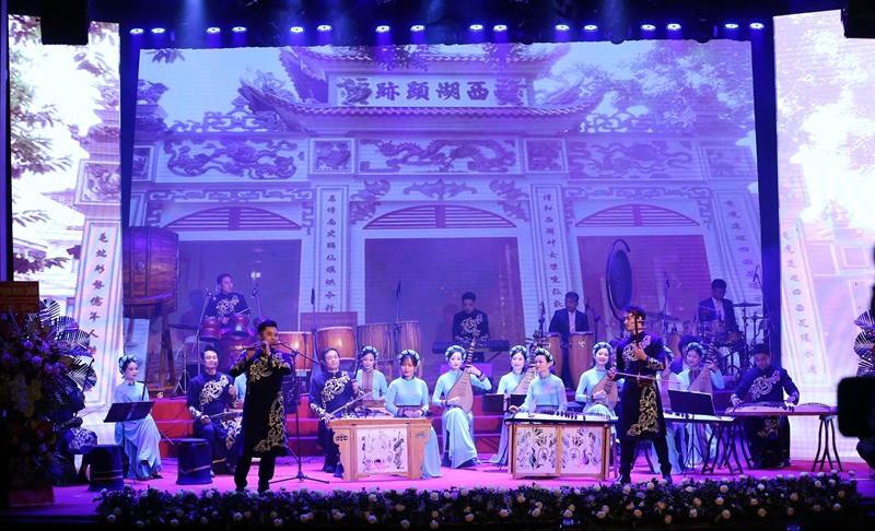 Một tiết mục biểu diễn tại lễ phát động sáng tác các tác phẩm văn học nghệ thuật chủ đề “Sống mãi với thời gian”. |