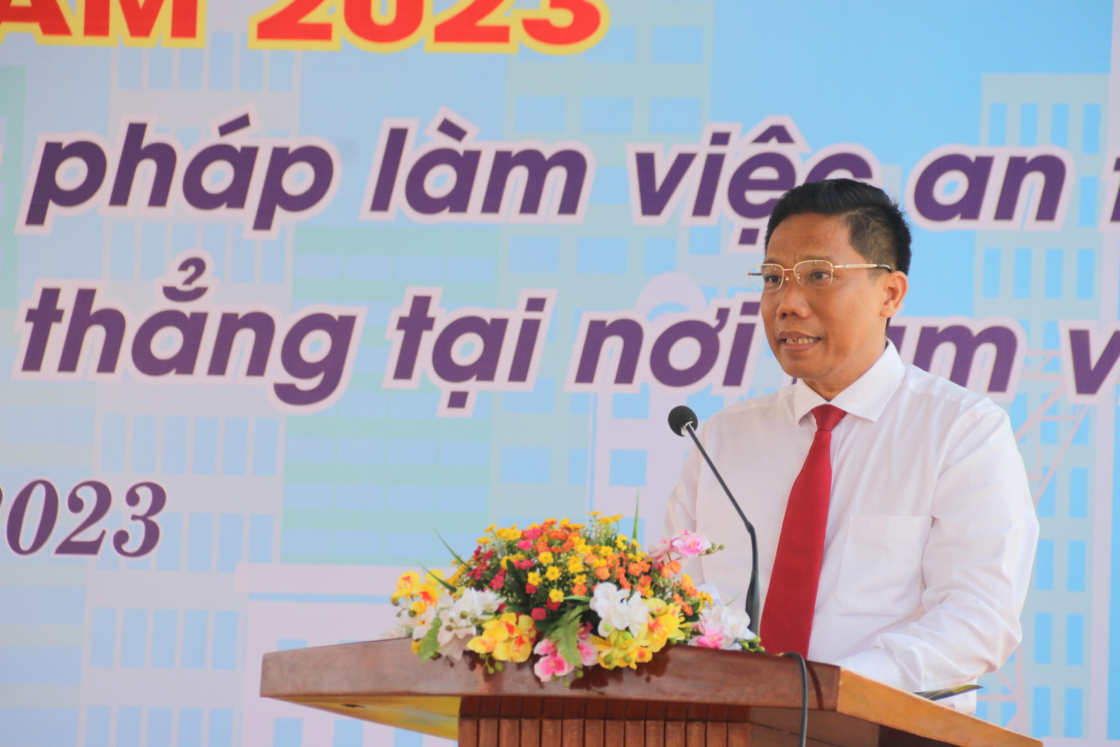 Phát biểu tại buổi lễ, ông Nguyễn Văn Vĩnh – Chủ tịch UBND tỉnh Tiền Giang kêu gọi toàn thể cán bộ, công nhân, viên chức, lao động và người sử dụng lao động tích cực hưởng ứng, thực hiện tốt việc đảm bảo ATVSLĐ, phòng, chống cháy nổ. Quyết tâm không để gia tăng số vụ tai nạn lao động và số người tử vong vì tai nạn lao động trong Tháng hành động và năm 2023.