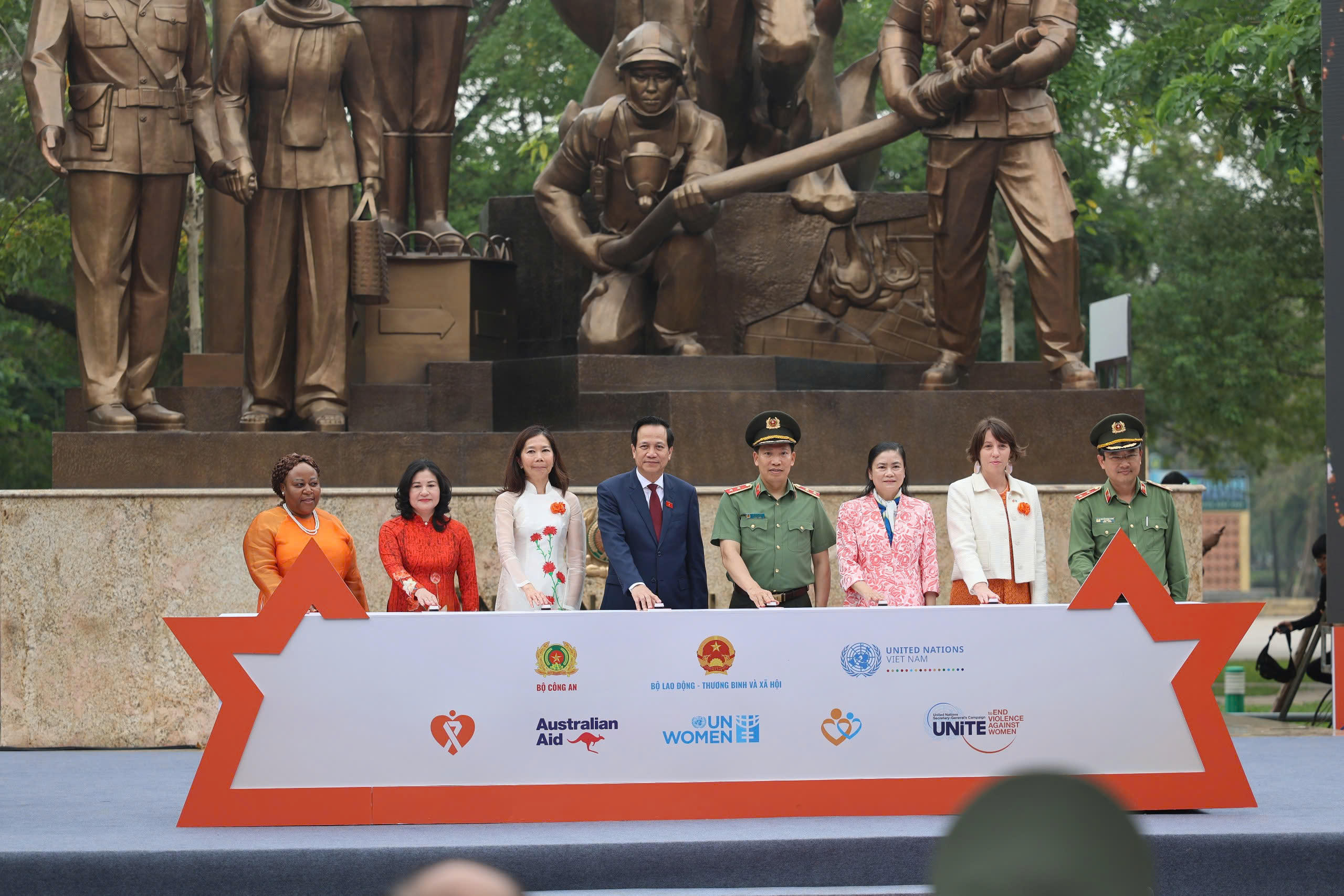 Tham dự buổi Lễ có đồng chí Đào Ngọc Dung, Ủy viên Ban chấp hành Trung ương Đảng, Bộ trưởng Bộ Lao động - Thương binh và Xã hội, Chủ tịch Ủy ban quốc gia vì sự tiến bộ của phụ nữ Việt Nam; đồng chí Trung tướng Lê Văn Tuyến, Uỷ viên Ban Thường vụ Đảng uỷ Công an Trung ương, Thứ trưởng Bộ Công an, bà Pauline Tamesis, Điều phối viên thường trú Liên hợp quốc tại Việt Nam, đại diện Lãnh đạo các bộ, ngành cơ quan trung ương, Lãnh đạo Sở Lao động – Thương binh và Xã hội một số địa phương, các vị Đại sứ, đại diện các tổ chức quốc tế, các doanh nghiệp và hơn 800 đại biểu thuộc các đơn vị của lực lượng Công an nhân dân.