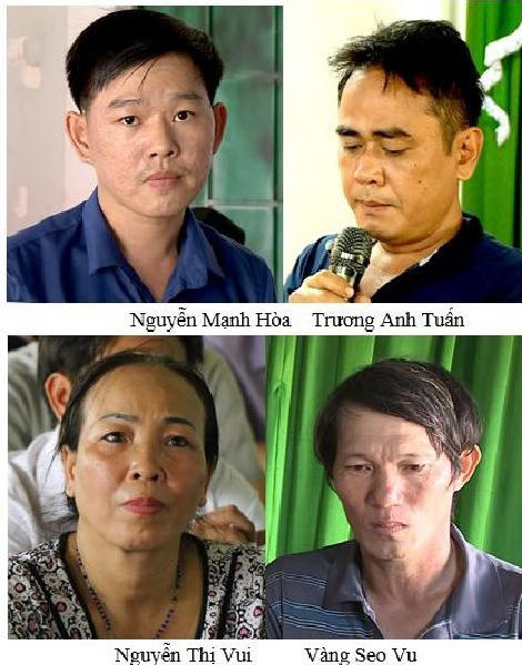 Những đối tượng đã được đưa ra kiểm điểm gồm: Nguyễn Mạnh Hòa (sinh năm - SN 1991, thường trú tại thị trấn Chơn Thành), Trương Anh Tuấn (SN 1974, thường trú thị trấn Đức Phong, huyện Bù Đăng), Nguyễn Thị Vui (SN 1965, thường trú xã Minh Hưng, huyện Bù Đăng), Vàng Seo Vu (SN 1970, thường trú xã Phú Sơn, huyện Bù Đăng).