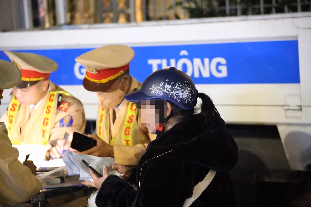 Trong hơn 1 giờ kiểm soát, CSGT đã phát hiện 4 trường hợp vi phạm, cá biệt có trường hợp một phụ nữ điều khiển xe máy vi phạm nồng độ cồn. Người phụ nữ này điều khiển xe mô tô, có nồng độ cồn ở mức 0,085 mg/lít khí thở.