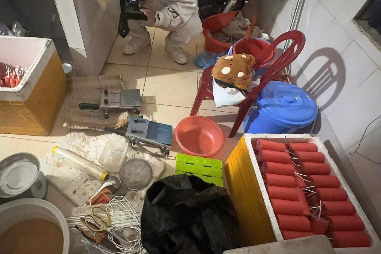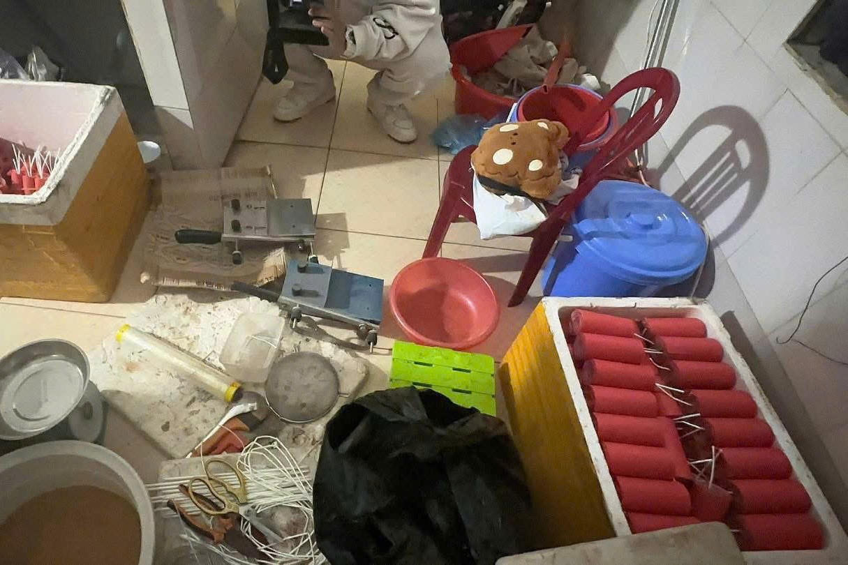 Tiến hành khám xét khẩn cấp, lực lượng chức năng thu giữ tổng cộng hơn 1,23 tạ pháo thành phẩm và bán thành phẩm; 67 kg tiền chất dùng để chế tạo thuốc pháo; khoảng 10 kg giấy màu sử dụng làm vỏ pháo cùng nhiều công cụ, phương tiện phục vụ việc sản xuất pháo như kéo, bàn cắt giấy, cân điện tử, hộp nhựa tròn và các vật dụng liên quan khác.