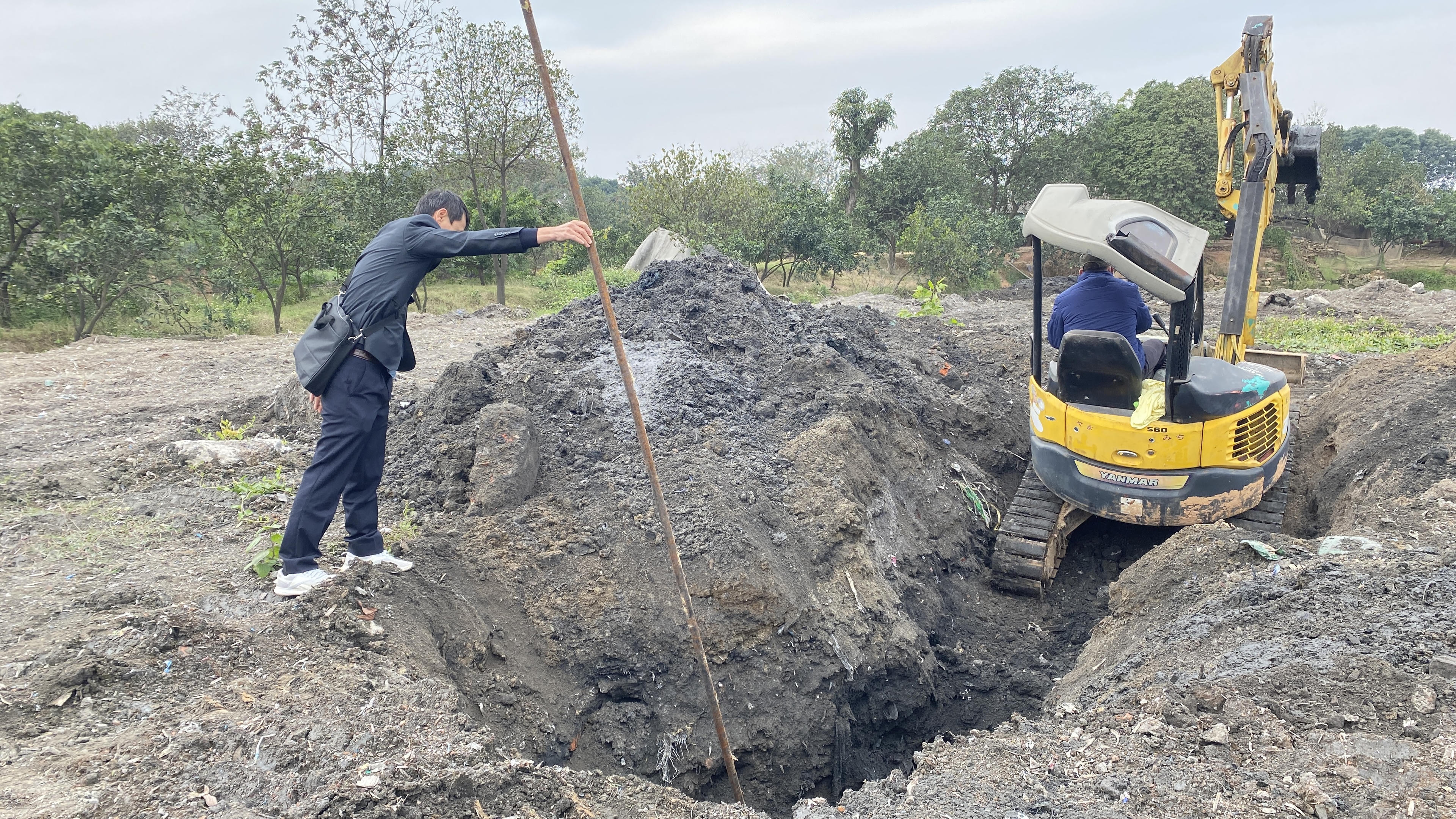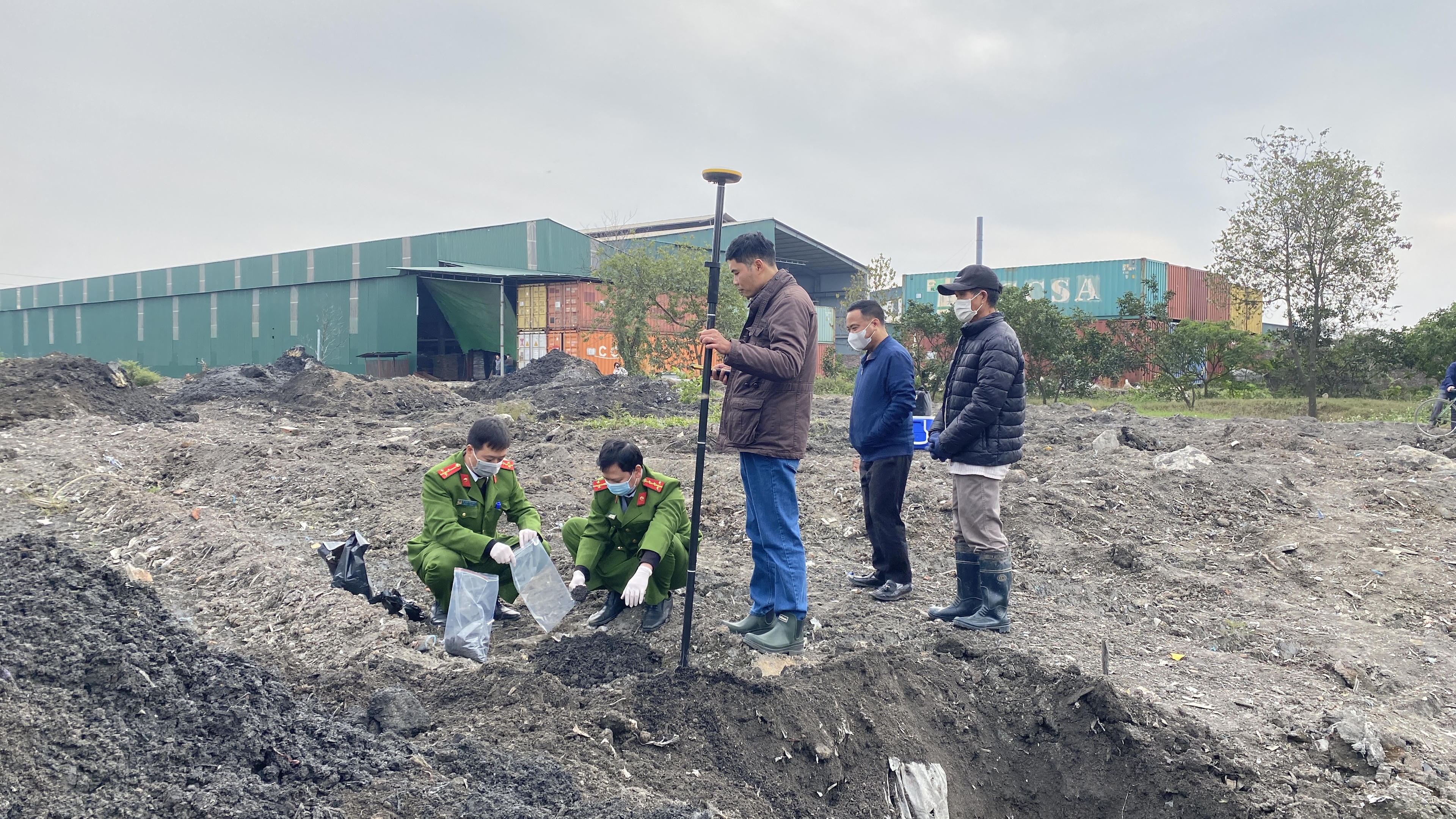 Ngay khi phát hiện những dấu hiệu nghi vấn, đoàn công tác đã phối hợp với địa phương, làm công tác đo đạc, kiểm tra để làm rõ hành vi vi phạm. Cũng ngay trong chiều 25/1, cơ quan chức năng đã đào 9 hố tại khu vực nghi san lấp chất thải để lấy mẫu làm kiểm nghiệm xác định chất thải.