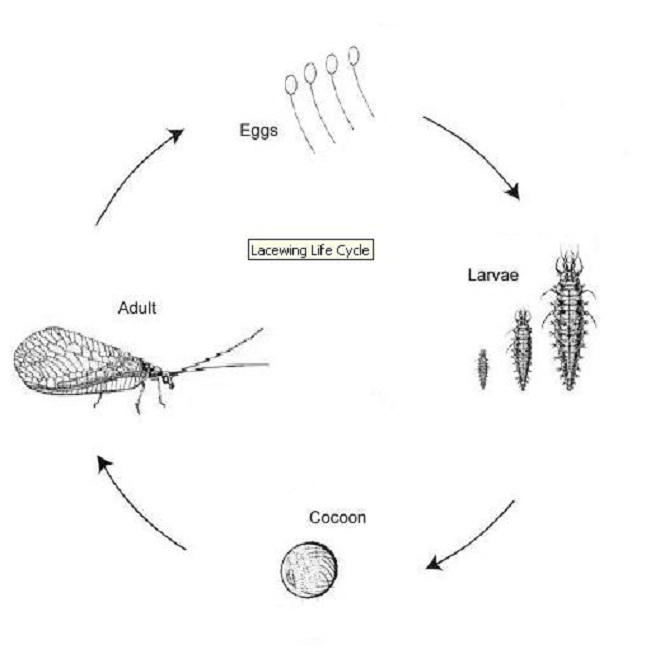 Chúng thường làm kén sau lá cây, dưới vỏ cây, lá cây cuốn tròn hoặc khe tường. Sau khi phá kén có đủ lông cánh, tức trở thành côn trùng chúng sẽ đi săn mồi như những con muỗi bình thường, chủ yếu là các loài rệp, côn trùng có hại. Vì vậy, đây là loài côn trùng có ích. Cả vòng đời của chúng chỉ giao phối một lần nhưng mỗi lần sinh có khi tới cả ngàn trứng.