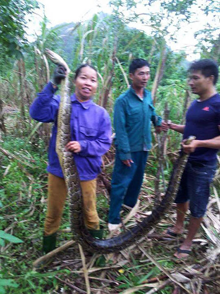 Cụ thể, ngày 19/11, những người thu hoạch mía đã phát hiện một con trăn cuộn tròn nằm trong ruộng mía, những người này đã vây đánh chết và bán lại cho một người dân trong xã nấu cao. Sau đó 1 ngày, cũng tại ruộng mía này, người dân tiếp tục phát hiện một con trăn khác nặng 20kg, sau đó cũng bắt và đem bán cho chủ ruộng mía để nấu cao.