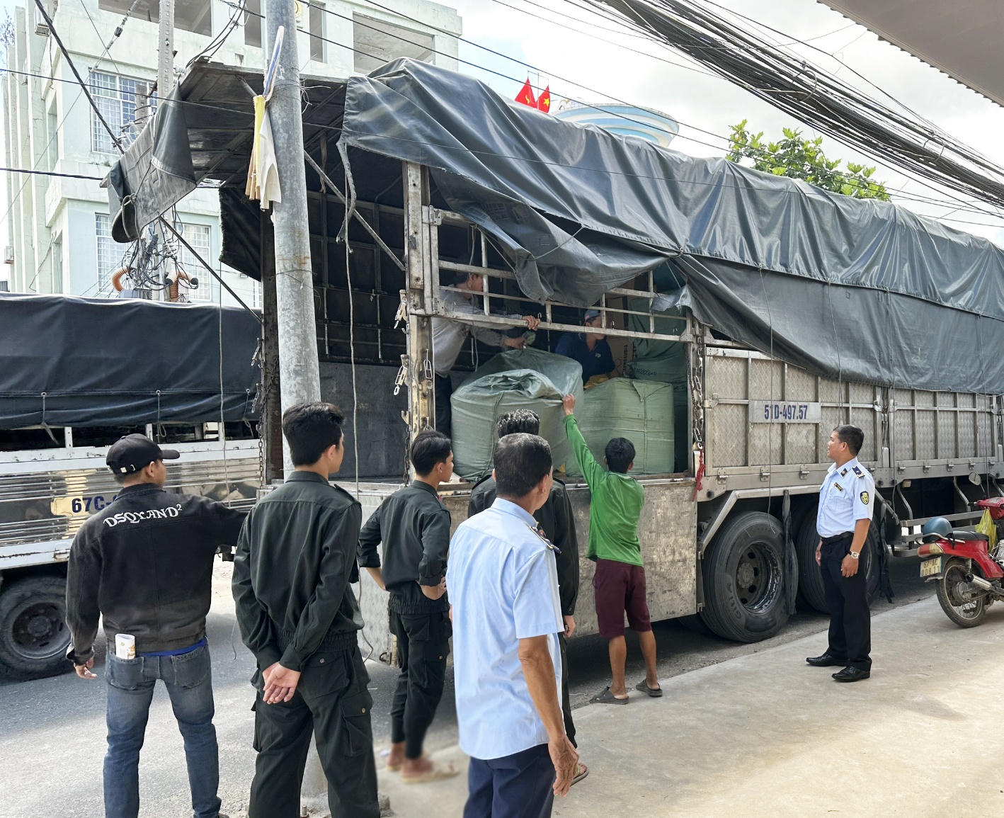 Trước đó, khoảng 5 giờ ngày 27/10/2023, Tổ công tác thuộc Phòng Cảnh sát kinh tế Công an tỉnh An Giang phối hợp Đội Quản lý thị trường số 2; Đồn Biên phòng và Chi cục Hải quan cửa khẩu Tịnh Biên đang trên đường tuần tra, khi đến khu vực Tổ 18, khóm Xuân Hoà, phường Tịnh Biên, thị xã Tịnh Biên thì phát 02 xe ô tô tải mang biển kiểm soát 51D-497.57 do tài xế Trần Minh Hùng (SN 1978, cư trú xã Thường Lạc, huyện Hồng Ngự, tỉnh Đồng Tháp) điều khiển và xe mang biển kiểm soát 68C-059.46, do tài xế Lâm Thành Hải (SN 1986, cư trú phường Pháo Đài, thành phố Hà Tiên, tỉnh Kiên Giang) điều khiển có nhiều biểu hiện nghi vấn nên tiến hành kiểm tra.