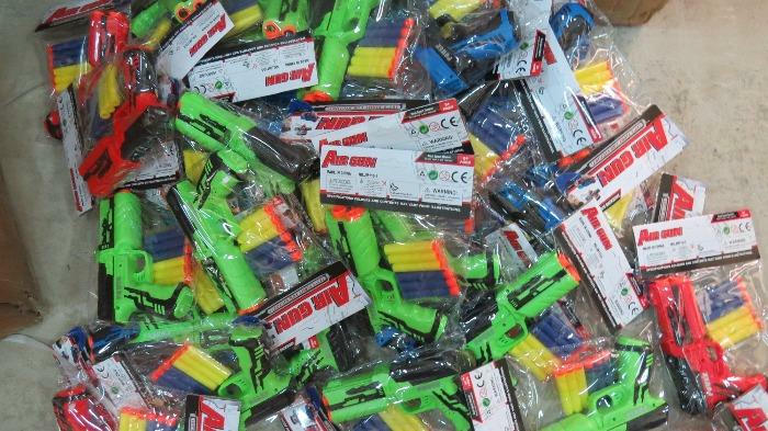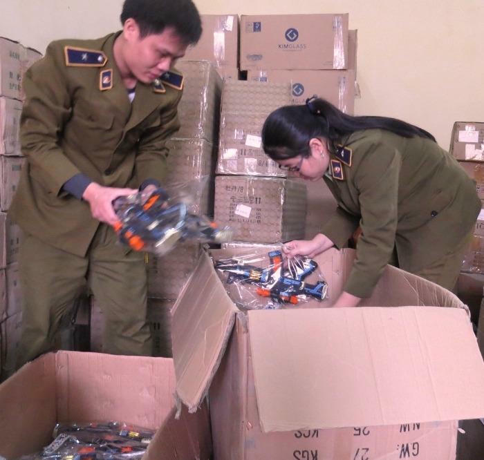 Toàn bộ số hàng nói trên được đựng trong hàng chục thùng giấy bịt kín và cất giấu tinh vi bằng các thùng hàng hóa, bánh kẹo do Việt Nam sản xuất che khuất bên ngoài. Trong đó, có nhiều loại đồ chơi có khả năng gây sát thương khi trẻ em sử dụng.