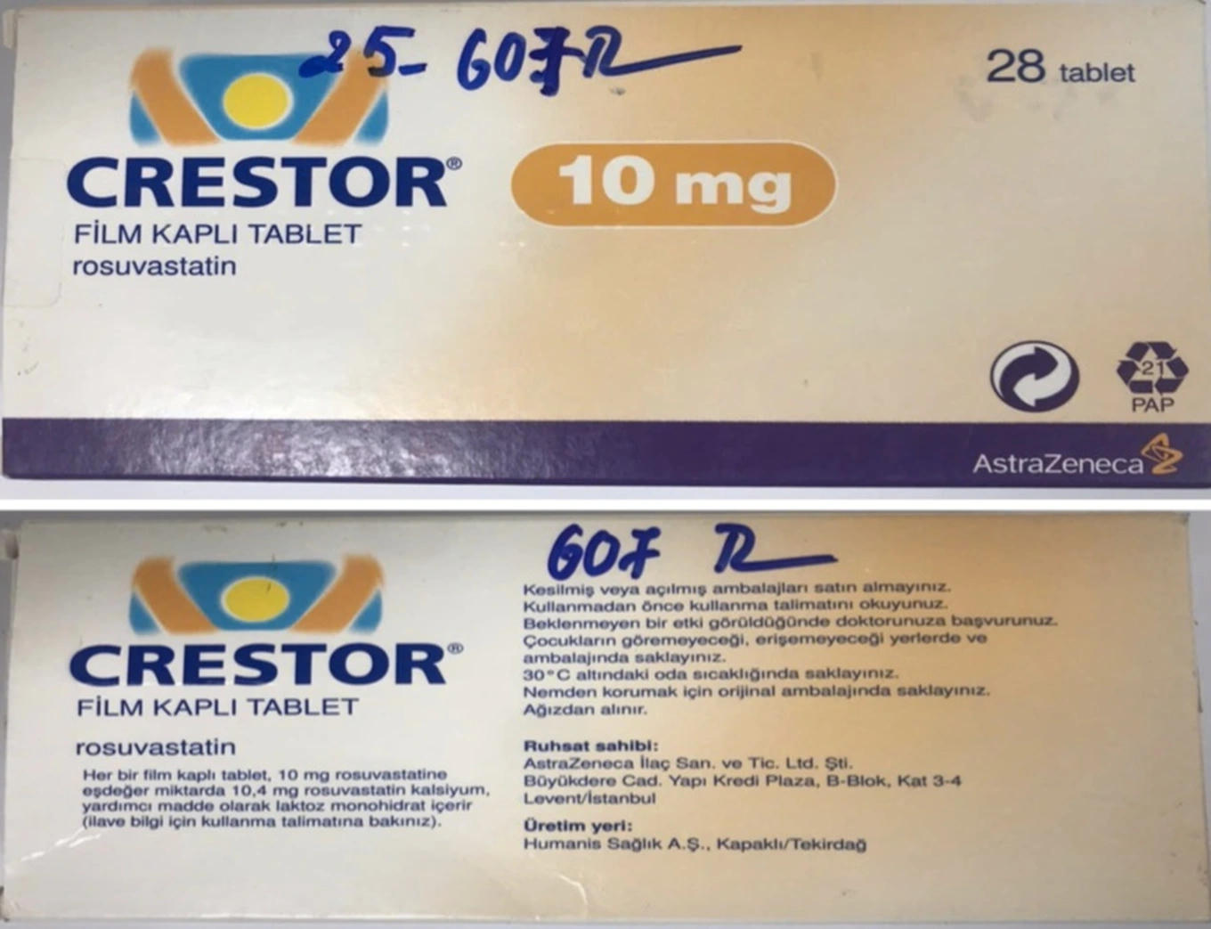 Crestor 10mg (Rosuvastatin); Số lô: A24236004, Hạn dùng: 07/2027. |