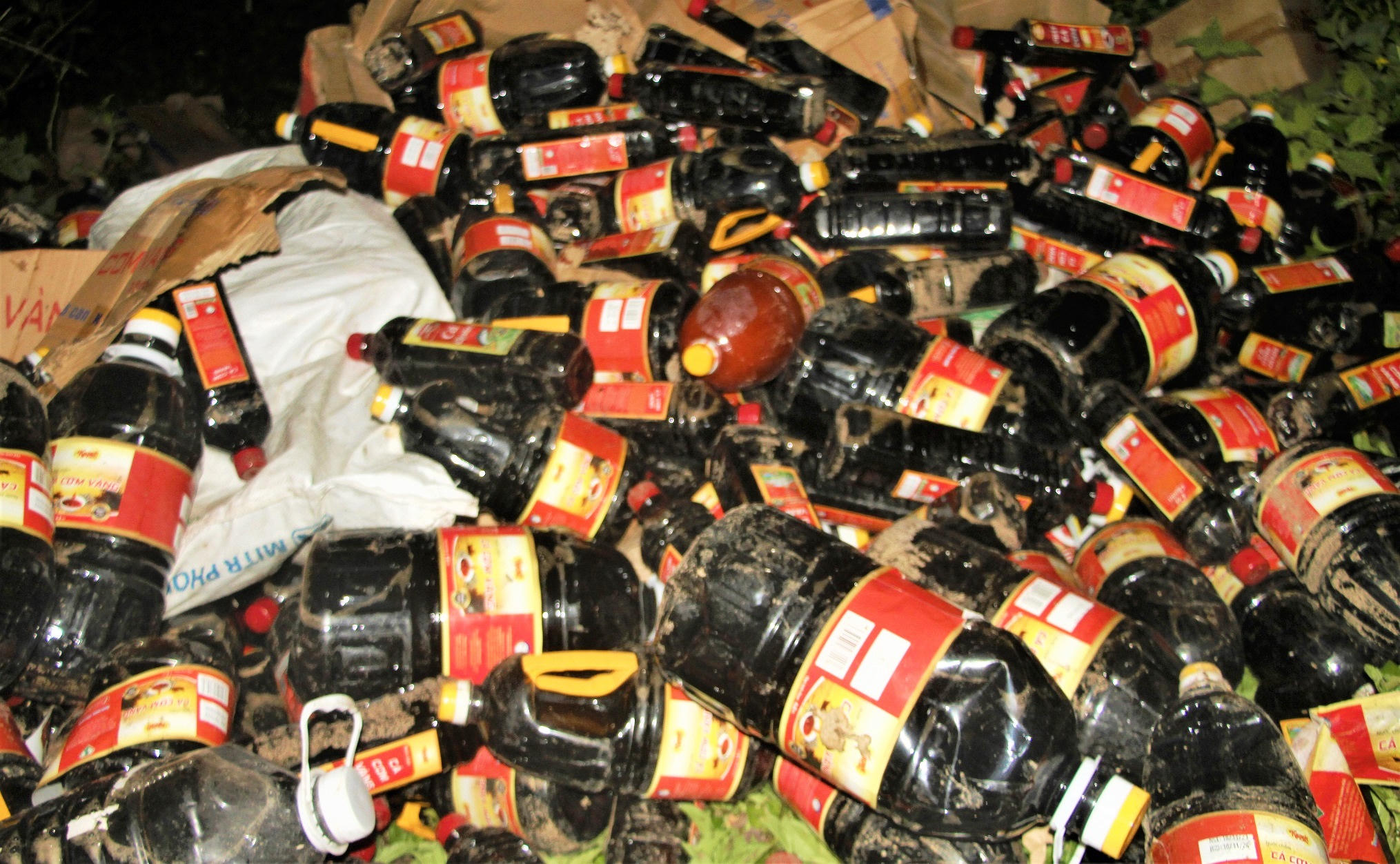 Phát hiện hàng ngàn chai nước mắm không rõ nguồn gốc bị vứt bỏ ở Quảng Nam
