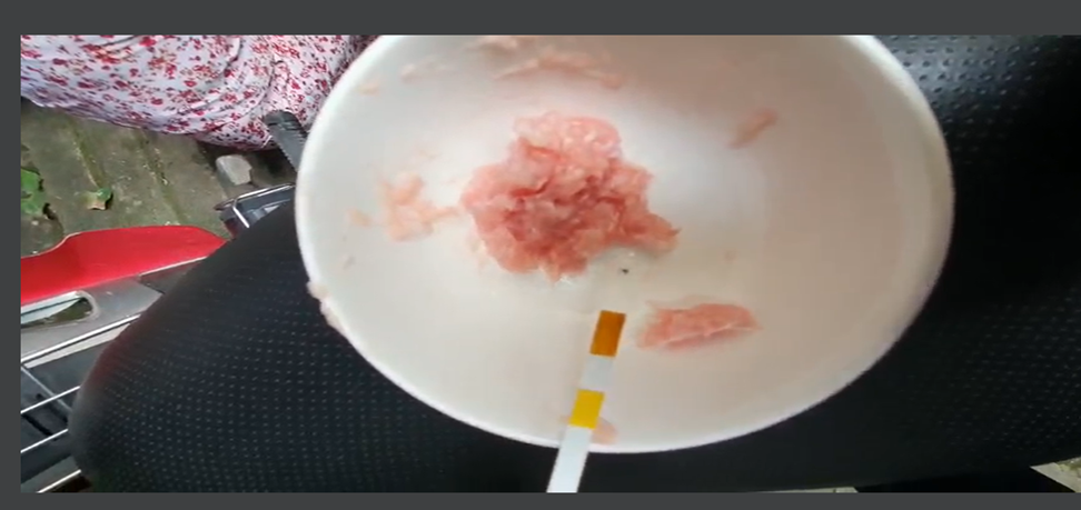 | Ảnh chụp từ clip - Kết quả test nhanh hàn the. |