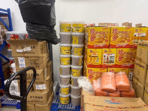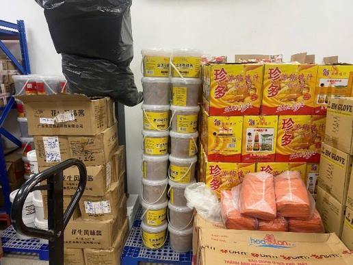 Qua kiểm tra, lực lượng chức năng phát hiện 12,3 tấn thực phẩm không bảo đảm an toàn, gồm: 8,3 tấn sụn gà có chữ nước ngoài; 3,6 tấn trứng non và 0,48 tấn mỡ động vật. Tổng giá trị lô hàng ước tính hơn 1 tỷ đồng.