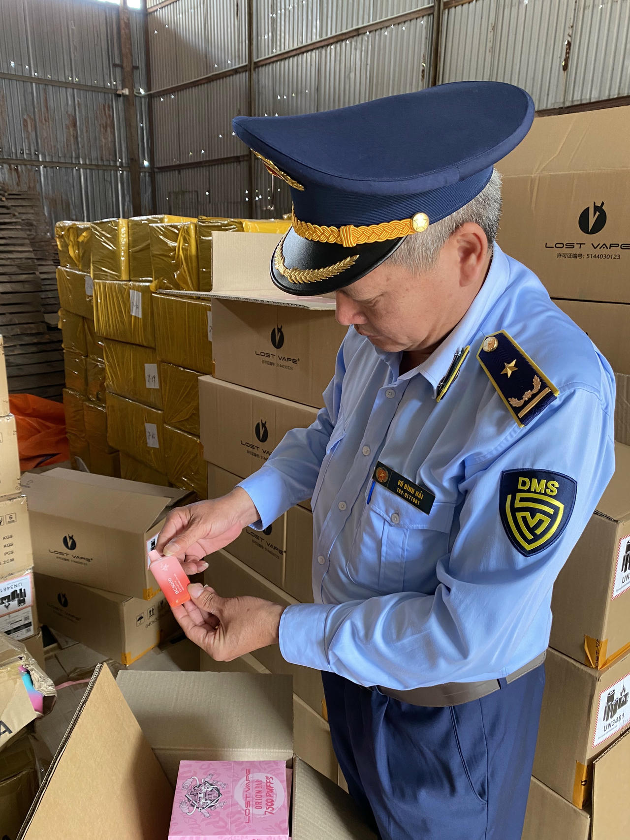 Tại thời điểm khám kho hàng, Đoàn kiểm tra phát hiện 103.000 sản phẩm thuốc lá điện tử các nhãn hiệu như: EBCREATE, LOST VAPE...