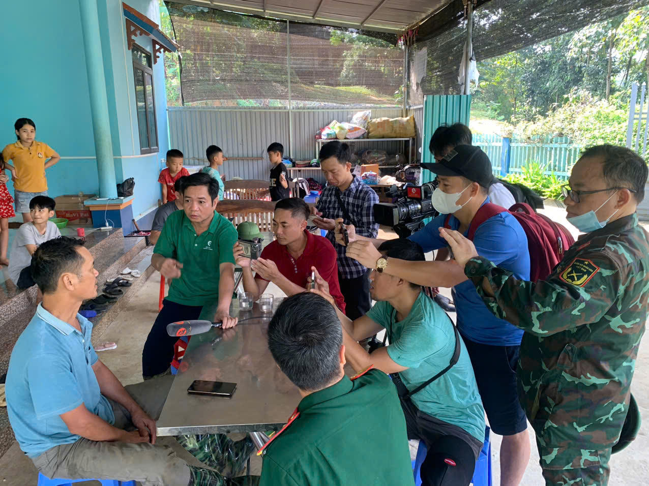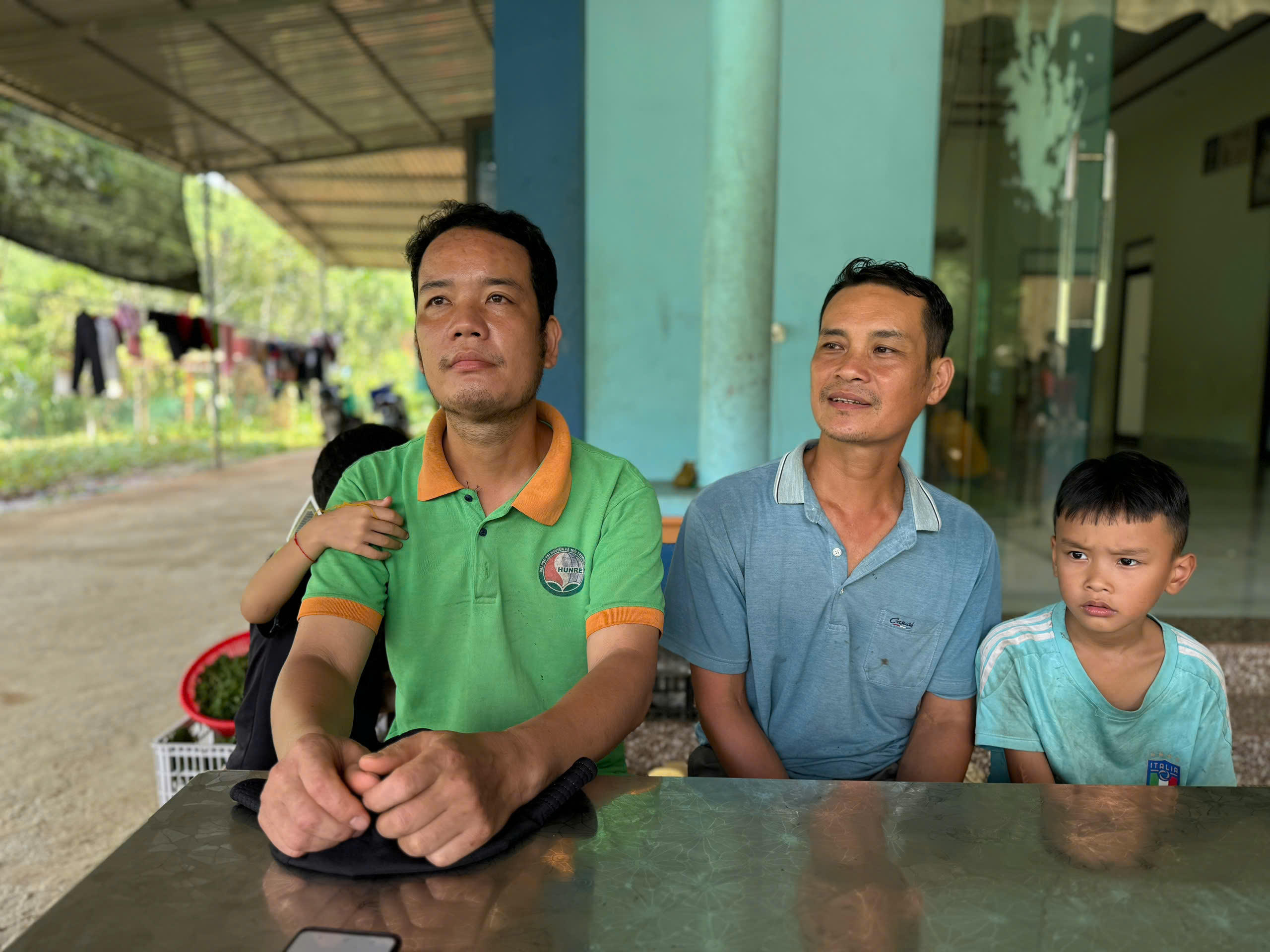 | Ông Hoàng Văn Tiện (áo xanh bên trái) vẫn chưa hết bàng hoàng trước thảm cảnh lũ quét gây ra |