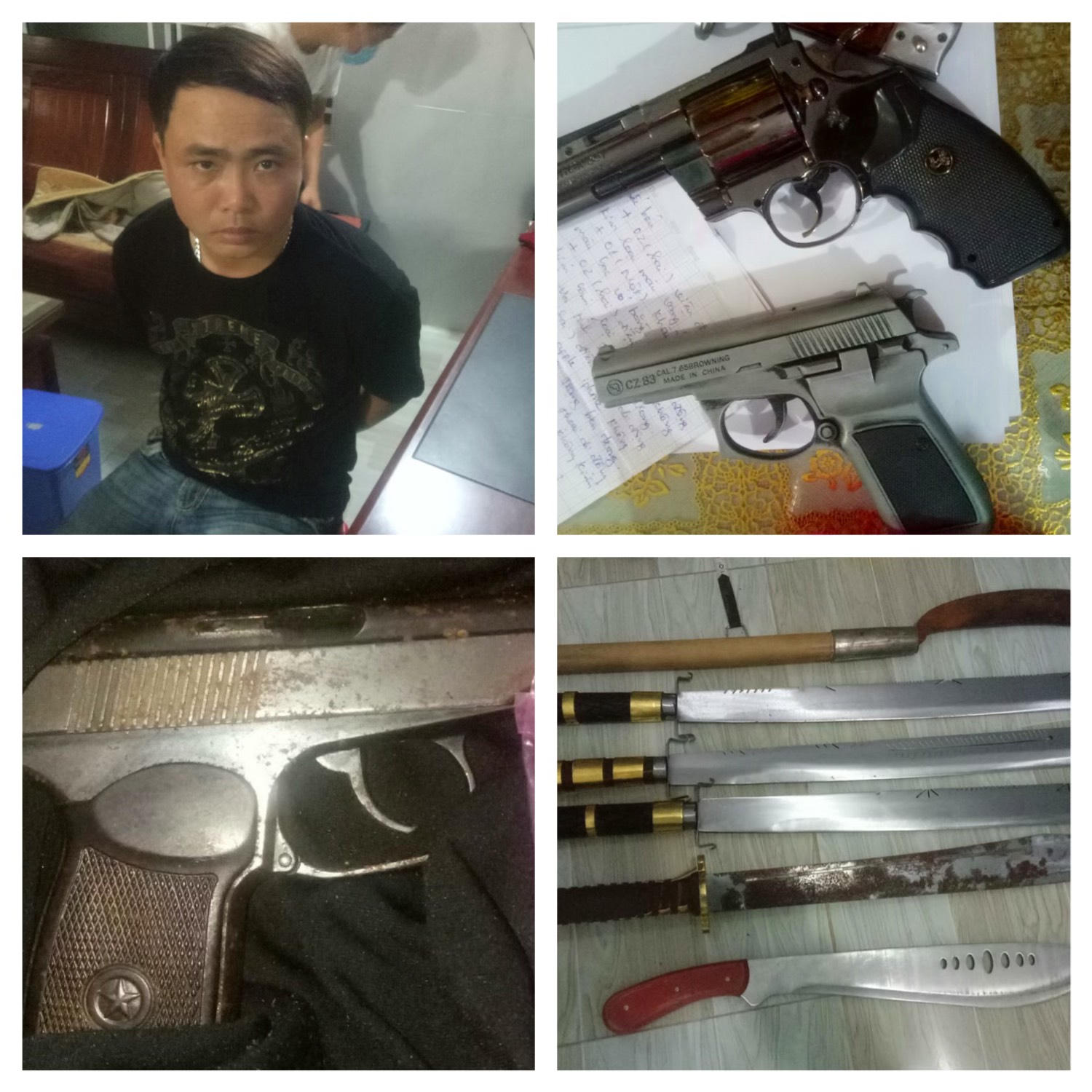 Tại đây, Lực lượng Công an đã tạm giữ trên chiếu bạc số tiền 12 triệu đồng, nhiều bộ bài tây. Qua kiểm tra nhanh tại chỗ Công an còn phát hiện đối tượng Bùi Minh Kim (sinh năm 1990) là chủ tiệm cầm đồ nói trên có tàng trữ 01 khẩu súng quân dụng K59 (có 07 viên đạn), 02 súng bắn đạn chì và nhiều dao, mã tấu.