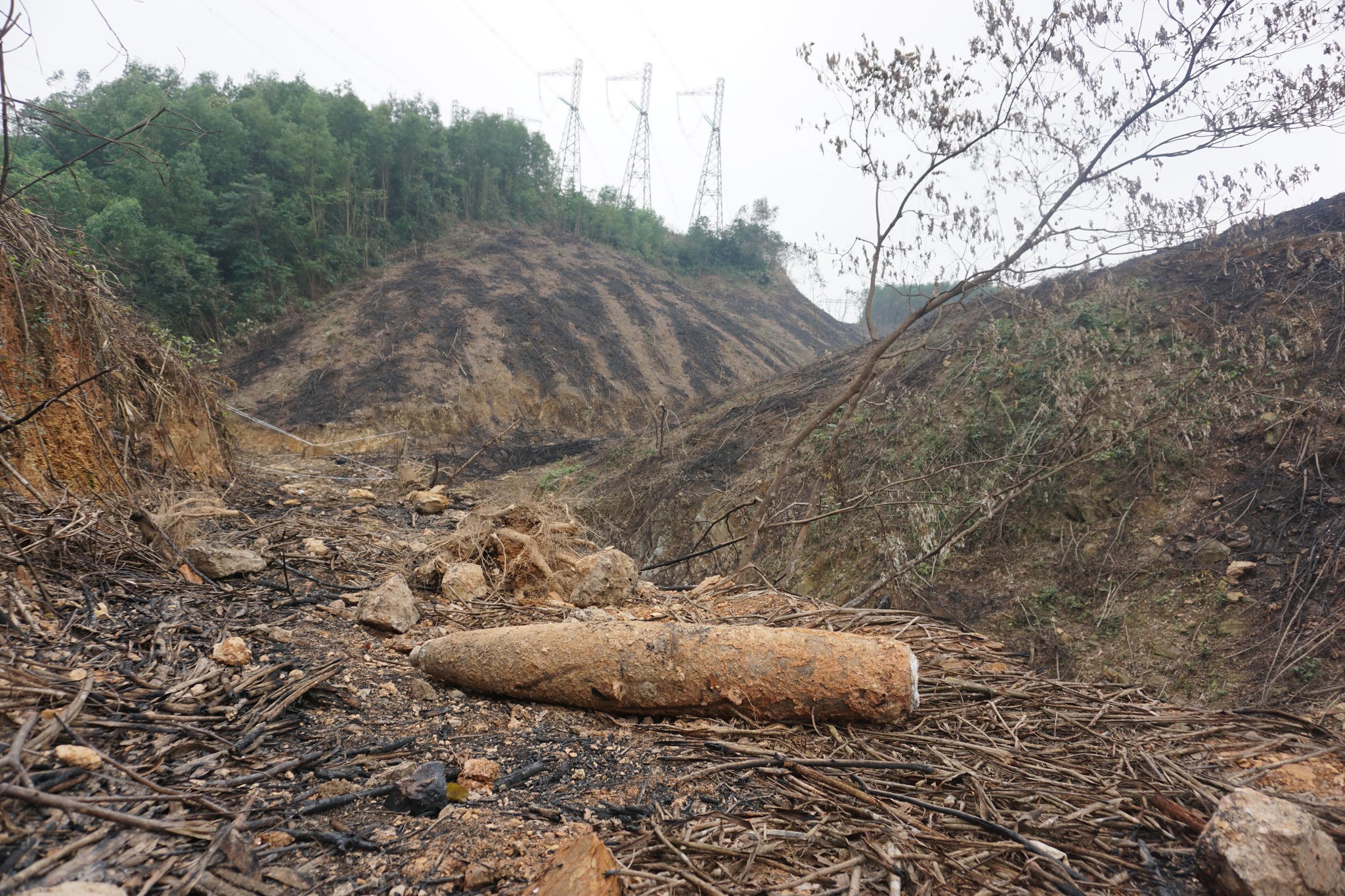 Quả bom được một người dân địa phương phát hiện khi đào đất chuẩn bị trồng keo và bạch đàn, nằm sâu dưới lòng đất khoảng 1m.