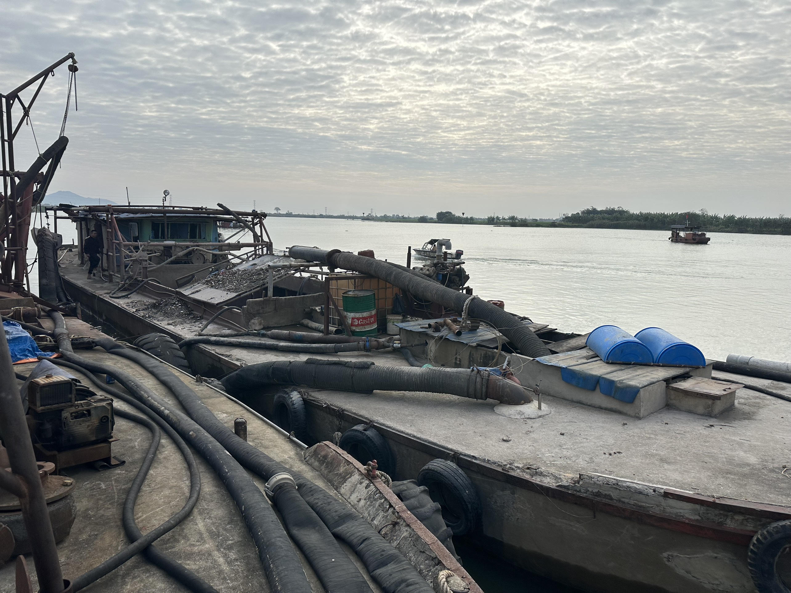Thông tin ban đầu, khoảng 23h ngày 24/12, tại tuyến sông Rạng thuộc địa phận xã Hồng Lạc, huyện Thanh Hà, tổ công tác Công an huyện Thanh Hà phối hợp cùng Phòng Cảnh sát giao thông Công an tỉnh Hải Dương đã tuần tra phát hiện 1 tàu thủy vỏ xi măng không biển kiểm soát (loại tàu khai thác cát) do anh Lưu Cung Nguyên (SN 1989, ở xã An Phượng, huyện Thanh Hà) điều khiển đang có hành vi bơm hút vật chất lòng sông lên khoang chứa của tàu.