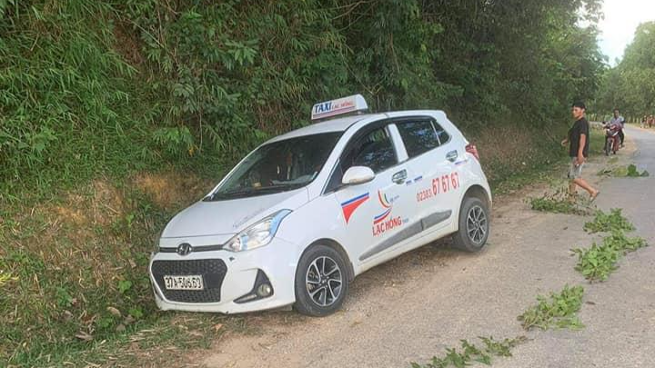 Cách thi thể khoảng vài chục mét là một chiếc taxi đâm vào vách đồi bên cạn đường. |