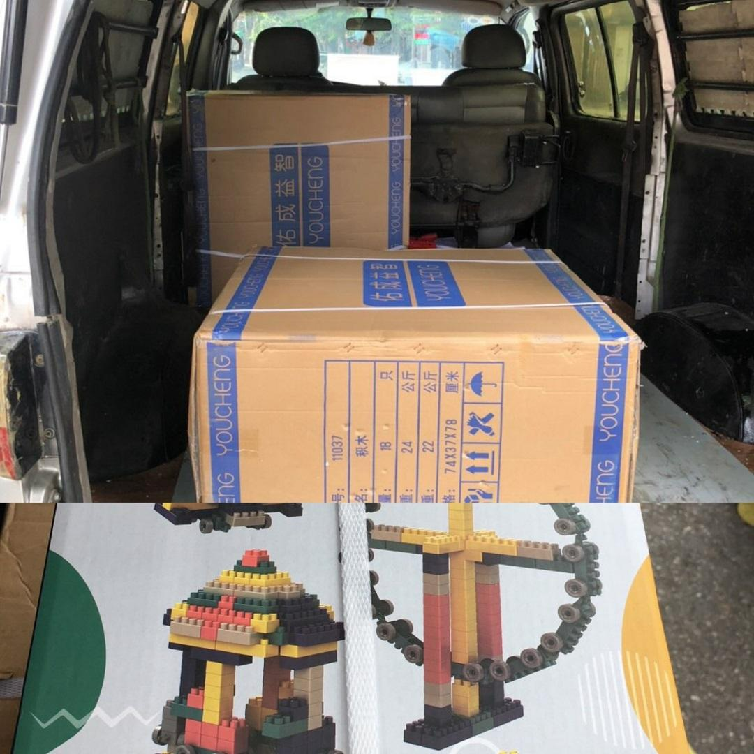 02 thùng đồ chơi trẻ em không rõ nguồn gốc xuất xứ được phát hiện trên xe ô tô. Ảnh: CATPHN |