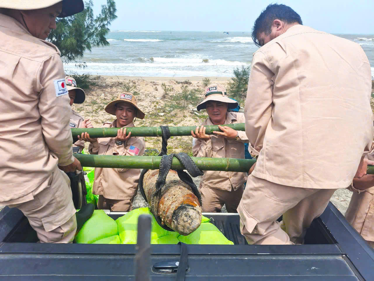 Phát hiện, xử lý quả bom nặng khoảng 230kg nằm sát bờ biển ở Quảng Bình