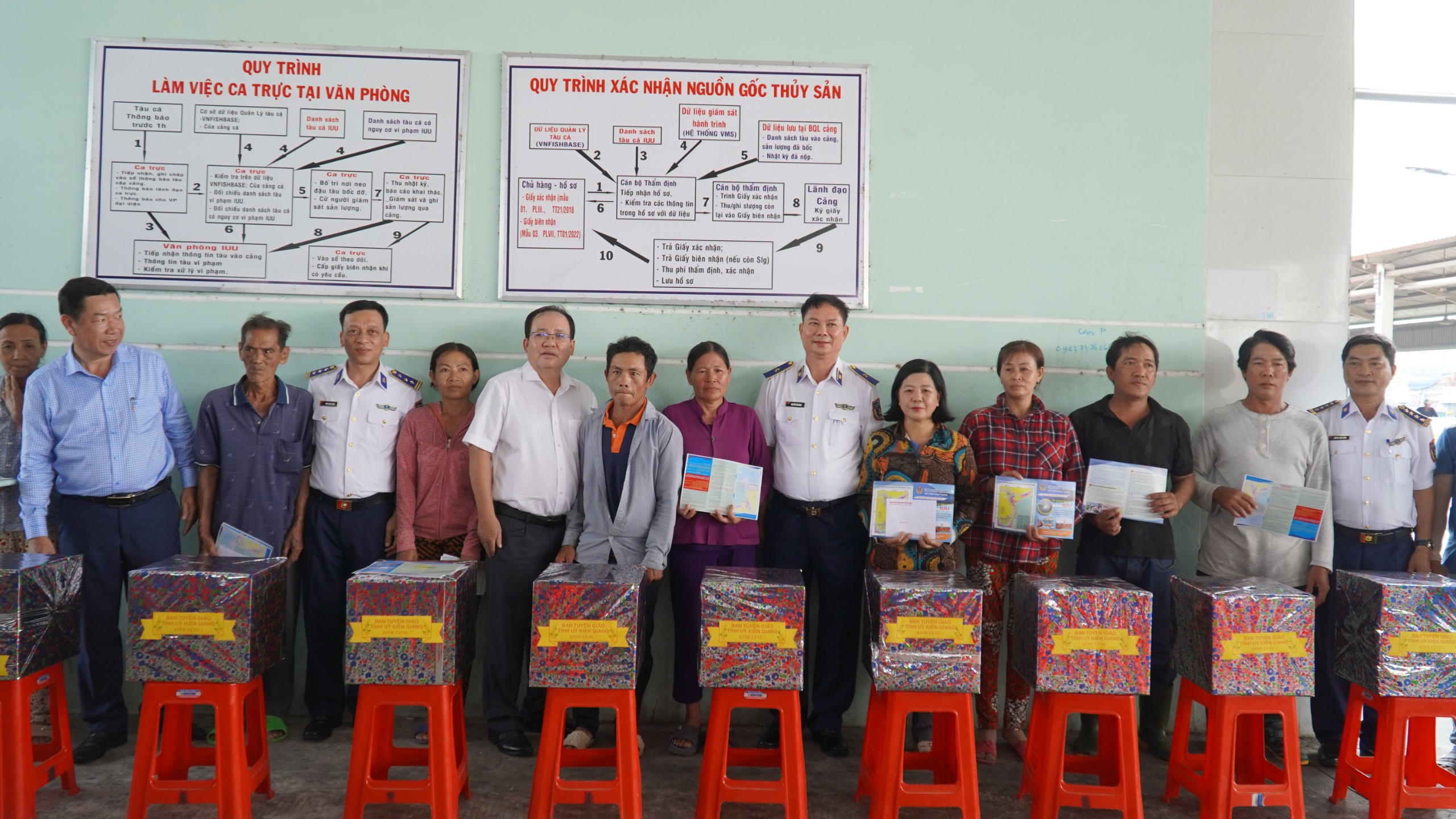 Dịp này, lãnh đạo Ban Tuyên giáo Tỉnh ủy Kiên Giang, Bộ Tư lệnh Vùng Cảnh sát biển 4 đã đến thăm hỏi tình hình khai thác hải sản, phát tờ rơi tuyên truyền về chống khai thác IUU cho một số ngư dân tại Cảng cá Tắc Cậu tại huyện Châu Thành. Đồng thời, tặng 10 phần quà, mỗi phần trị giá 1 triệu đồng cho ngư dân có hoàn cảnh khó khăn.