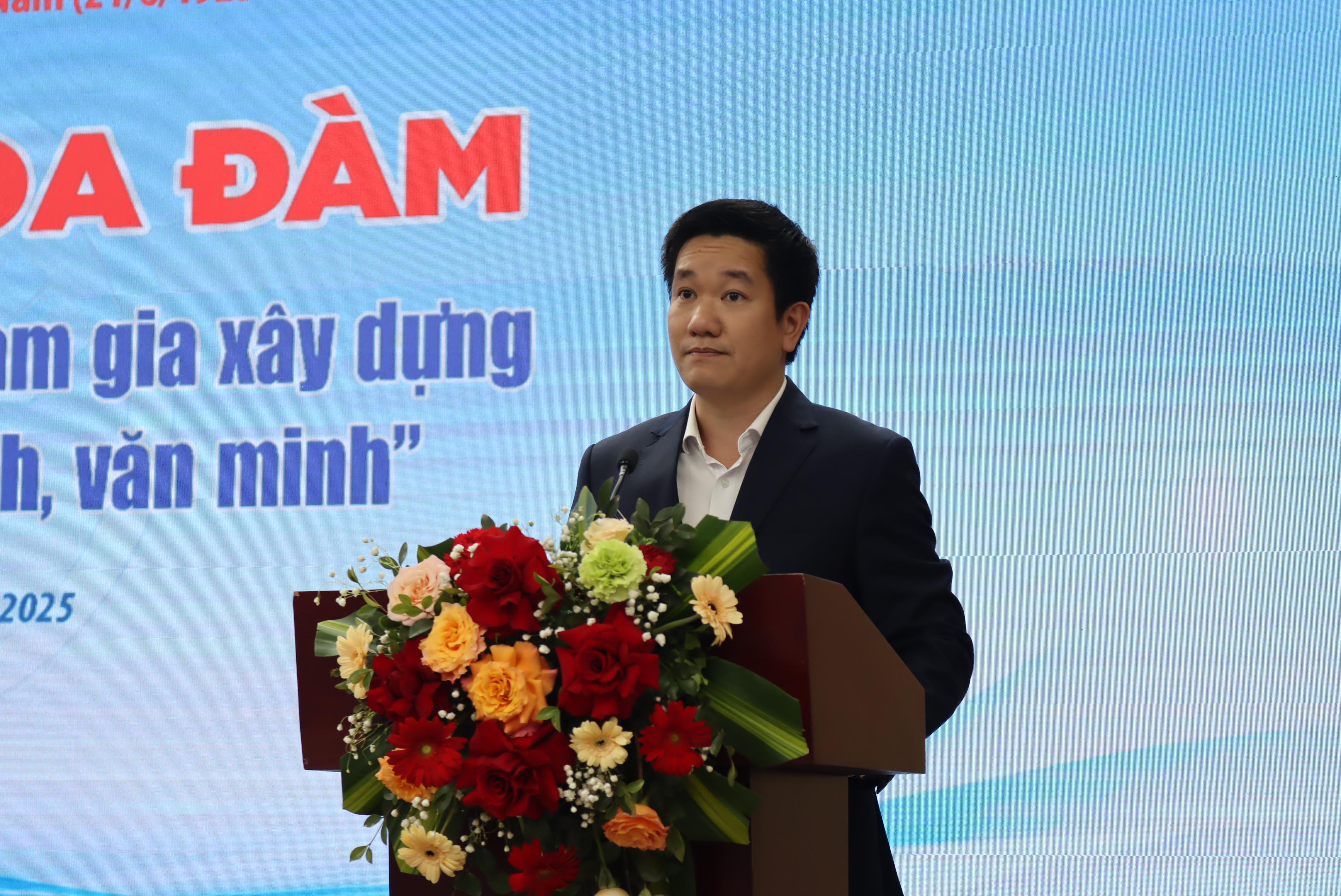 Ông Nguyễn Huy Cường, Phó Trưởng ban Tuyên giáo và Dân vận Thành uỷ Hà Nội phát biểu khai mạc |