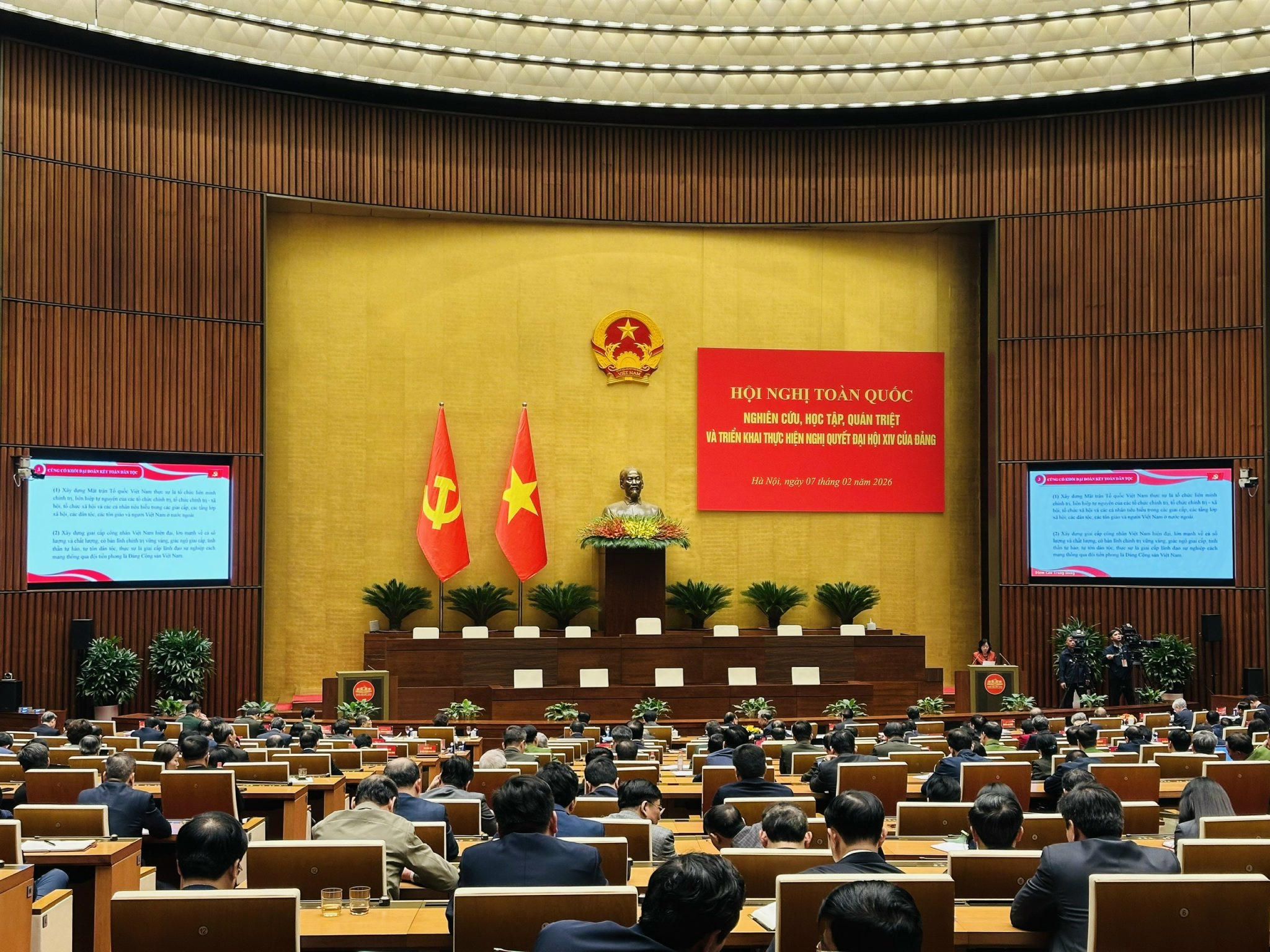Sáng 7/2, tại Hội nghị toàn quốc nghiên cứu, học tập, quán triệt và triển khai thực hiện Nghị quyết Đại hội XIV của Đảng, đồng chí Bùi Thị Minh Hoài, Ủy viên Bộ Chính trị, Bí thư Trung ương Đảng, Bí thư Đảng ủy Mặt trận Tổ quốc, các đoàn thể Trung ương, Chủ tịch Ủy ban Trung ương Mặt trận Tổ quốc Việt Nam đã trình bày chuyên đề “Phát huy sức mạnh đại đoàn kết toàn dân tộc trong sự nghiệp xây dựng, phát triển đất nước và bảo vệ Tổ quốc trong kỷ nguyên mới”.