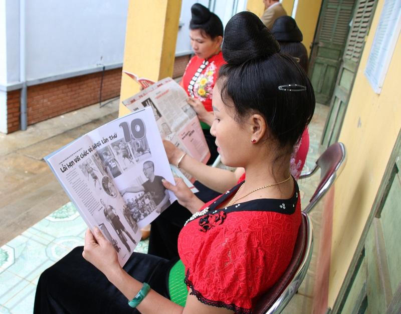 Người dân Sơn La đọc sách báo, tìm hiểu thông tin tại các tủ sách pháp luật. |