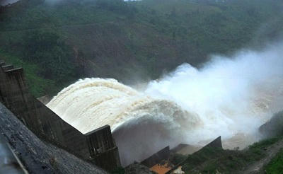Thuỷ điện Đăk Mi 4 xả lũ vào tháng 11/2013. Ảnh tư liệu.