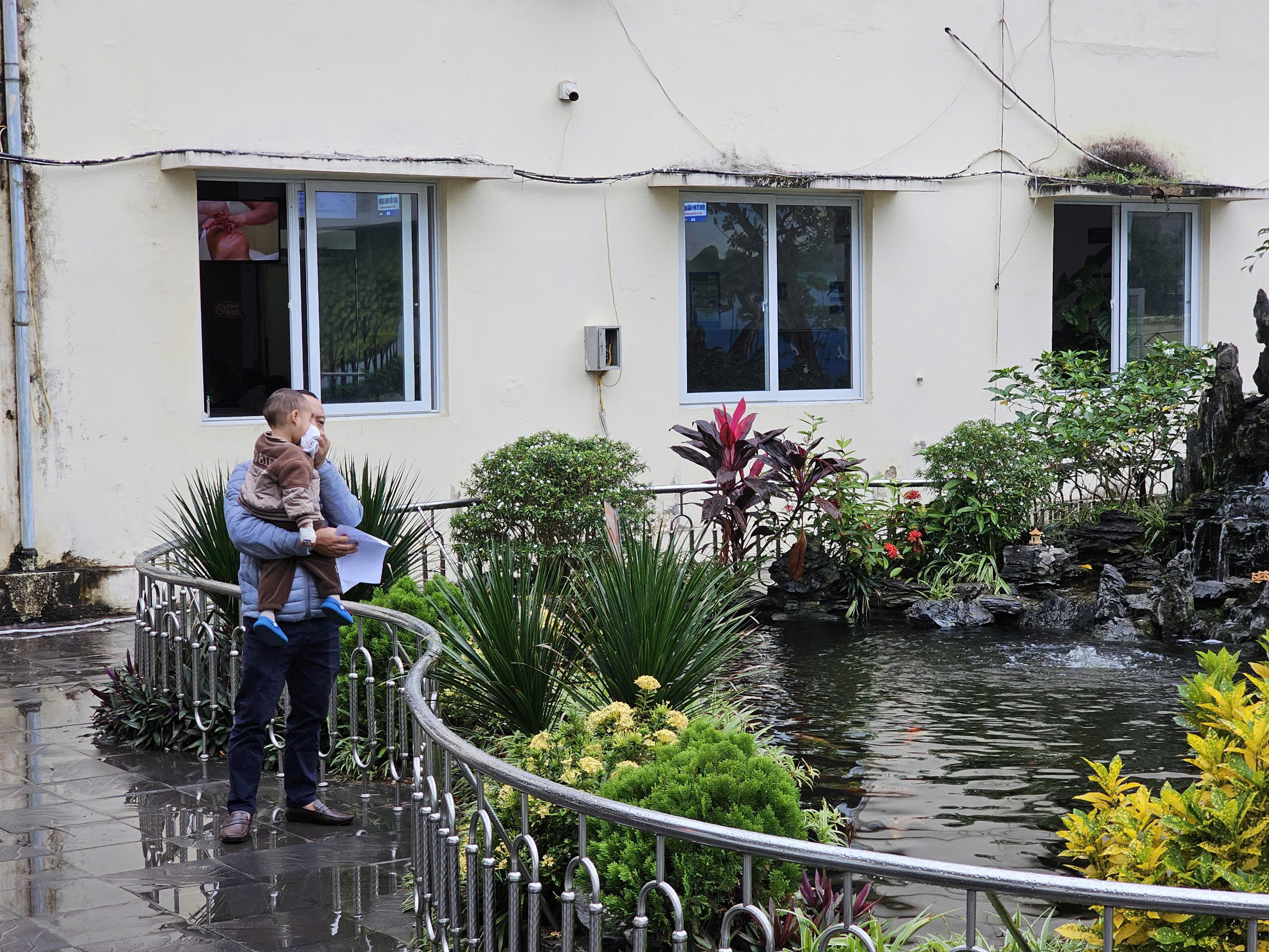Những chậu cây cảnh phủ xanh khắp các hành lang, khu vực chờ của Bệnh viện Sản Nhi Phú Thọ. |