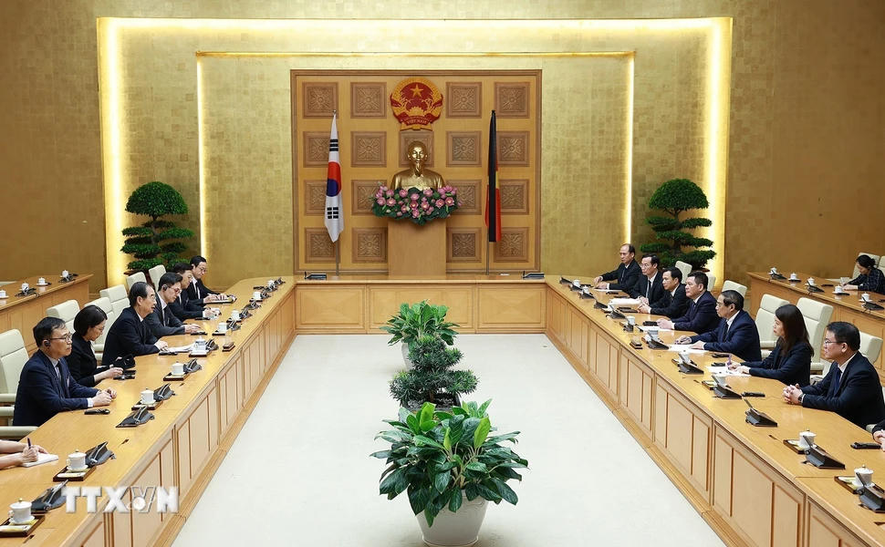 Thủ tướng Chính phủ Phạm Minh Chính tiếp Thủ tướng Hàn Quốc Han Duck Soo. |