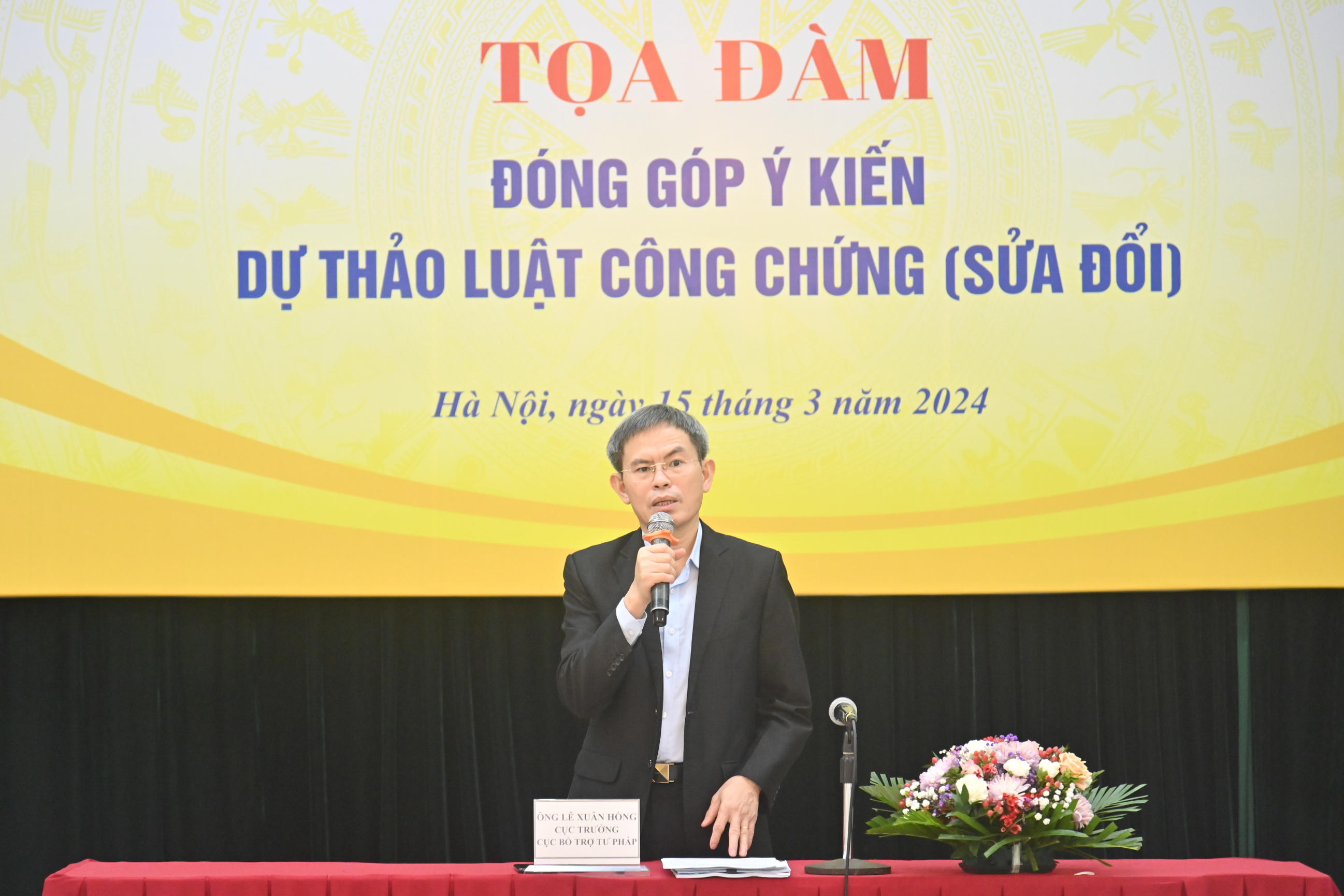 Phát biểu khai mạc, Cục trưởng Lê Xuân Hồng cho biết trong quá trình xây dựng dự thảo Luật Công chứng (sửa đổi), Bộ Tư pháp đã tổ chức nhiều tọa đàm, hội thảo để lấy ý kiến các cơ quan, tổ chức hành nghề công chứng, công chứng viên. Tuy nhiên dự thảo Luật vẫn còn một số vấn đề còn có có ý kiến khác nhau, cần tiếp tục thảo luận như: phạm vi, thẩm quyền công chứng; tiêu chuẩn bổ nhiệm công chứng viên; quản lý nhà nước về công chứng; công chứng số…