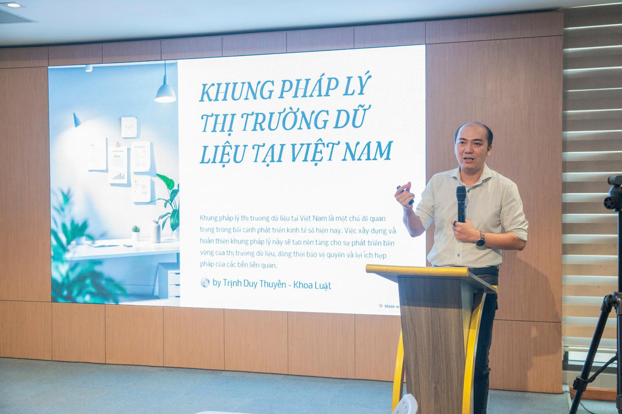 Tại hội thảo, trình bày tham luận về khung pháp lý cho thị trường dữ liệu tại Việt Nam, TS Trịnh Duy Thuyên - Trường Kinh tế, Luật và Quản lý nhà nước chia sẻ: Việc xây dựng và hoàn thiện khung pháp lý thị trường dữ liệu tại Việt Nam sẽ tạo nền tảng cho sự phát triển bền vững của thị trường dữ liệu, đồng thời bảo vệ quyền và lợi ích hợp pháp của các bên liên quan. Khung pháp lý Việt Nam về thị trường dữ liệu đang trong quá trình hình thành và phát triển.