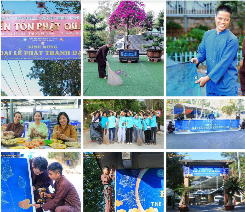 Thiền Tôn Phật Quang (Bà Rịa - Vũng Tàu) những ngày này cũng đang hân hoan chuẩn bị dọn dẹp, sửa sang cảnh quan, treo băng rôn chào mừng Đại lễ Phật Thành Đạo năm 2024.