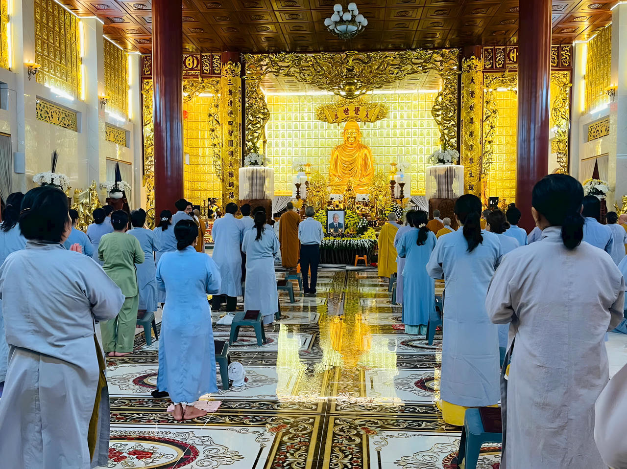 Lễ tưởng niệm Tổng Bí thư Nguyễn Phú Trọng diễn ra trong không khí trang nghiêm với các nội dung chính: niệm Phật cầu gia bị, phút tưởng niệm, lời tưởng niệm của đức pháp chủ Giáo hội Phật giáo Việt Nam, nghi thức tưởng niệm…